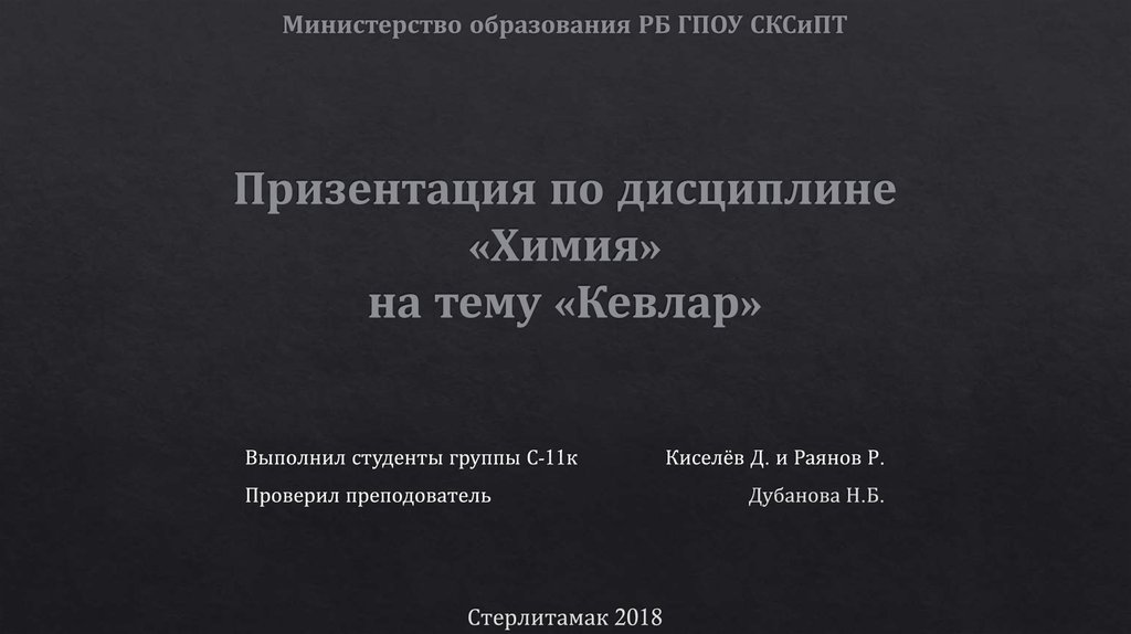 1. Министерство образования РБ ГПОУ СКСиПТ Призентация по дисциплине «Химия» на тему «Кевлар»