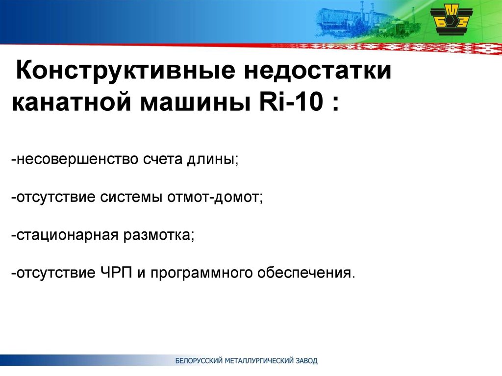 Конструктивные недостаткиканатной машины Ri-10 :