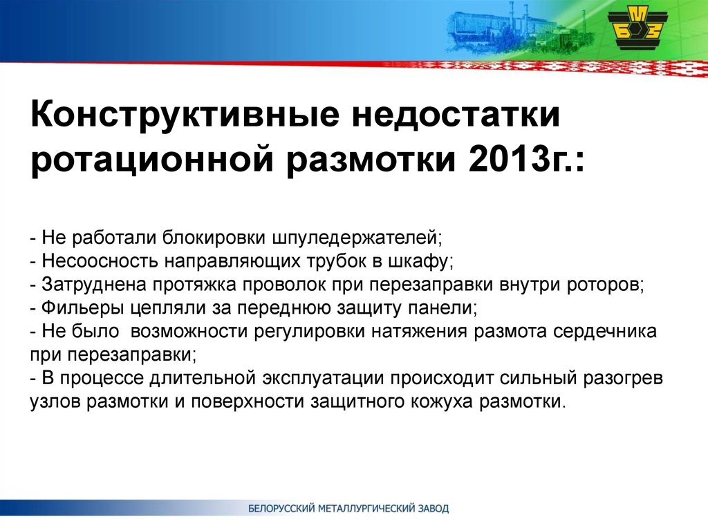 Конструктивные недостаткиротационной размотки 2013г.: