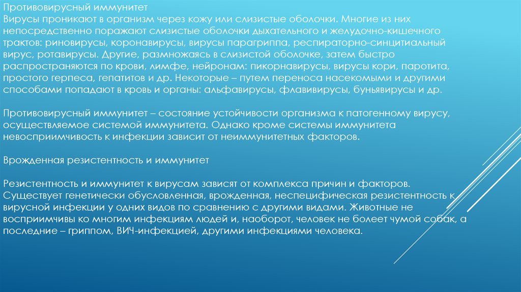 Противовирусный иммунитетВирусы проникают в организм через кожу или слизистые оболочки. Многие из них