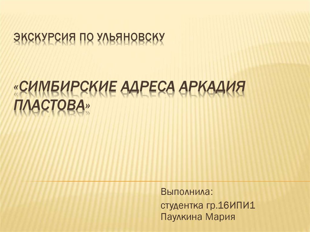 Экскурсия по Ульяновску. «Симбирские адреса Аркадия Пластова»