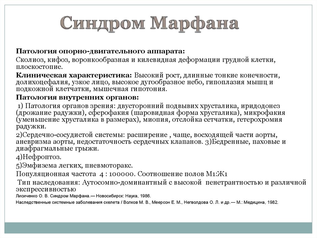 1. Наследственно – генетические синдромы и заболевания, сопровождающиеся сколиотической деформацией позвоночника