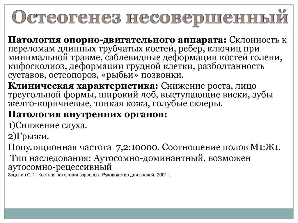 Патология опорно-двигательного аппарата: Склонность кпереломам длинных трубчатых костей, ребер, ключиц при