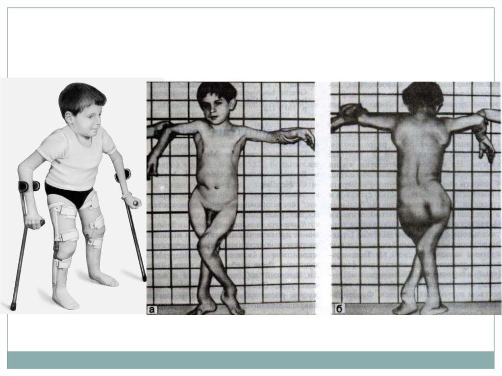 выдается вперед, косолапость, ограничение отведения в тазобедренных