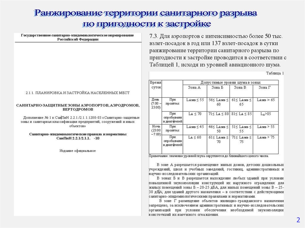 3.1 Нормируемыми параметрами авиационного шума на территории жилой застройки являются эквивалентный уровень звука и максимальный