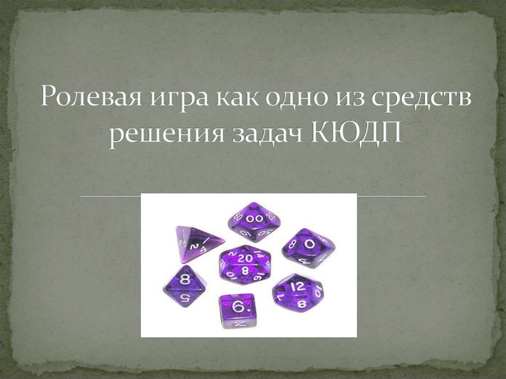 1. Ролевая игра как одно из средств решения задач КЮДП