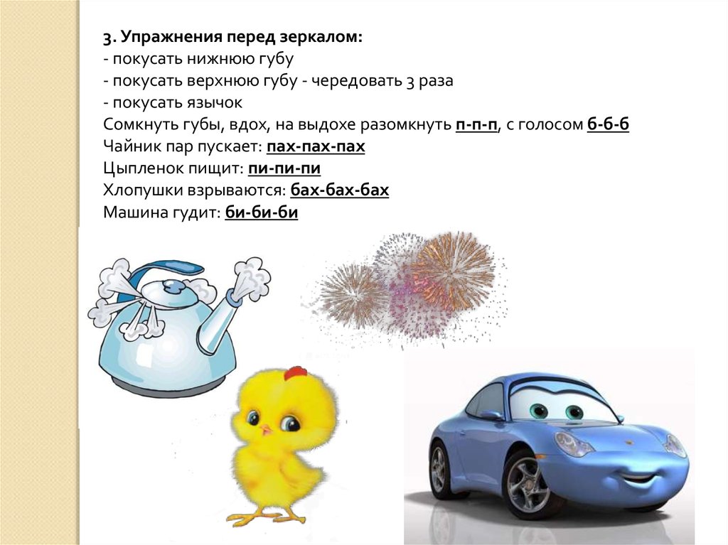 3. Упражнения перед зеркалом:- покусать нижнюю губу