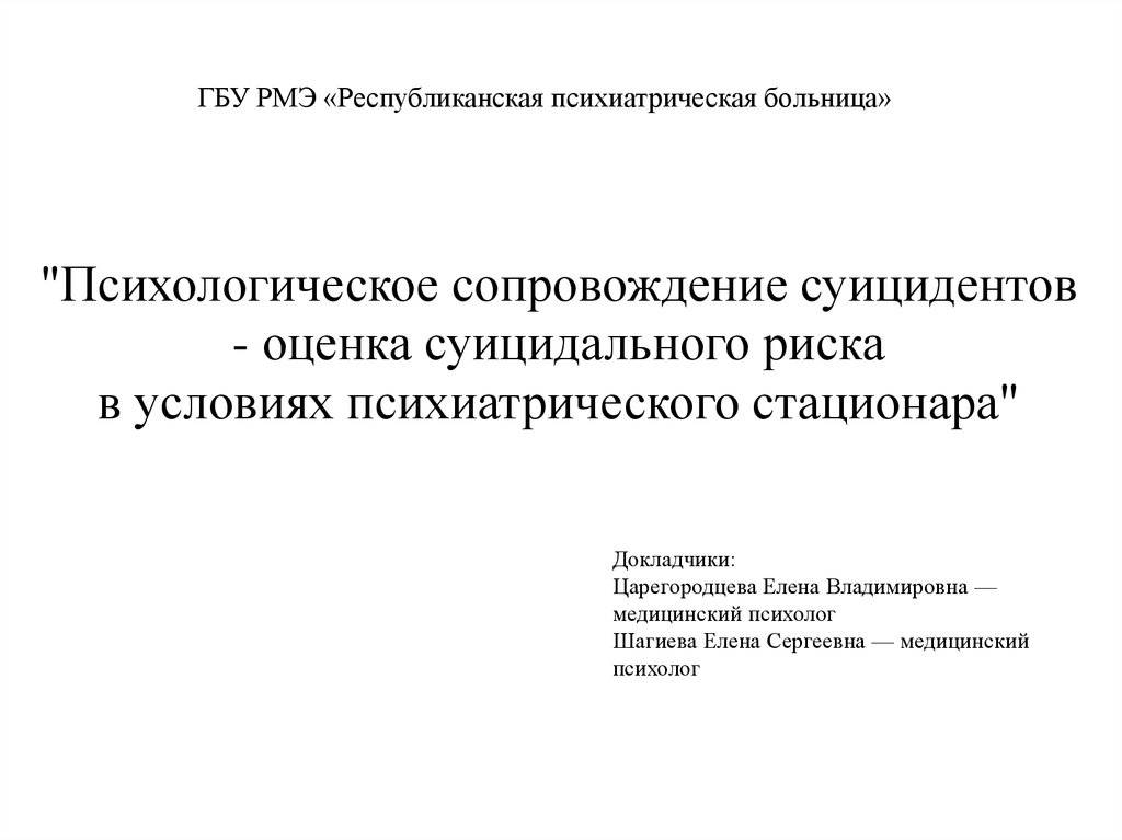 Психологическое сопровождение суицидентов - оценка суицидального риска в условиях психиатрического стационара