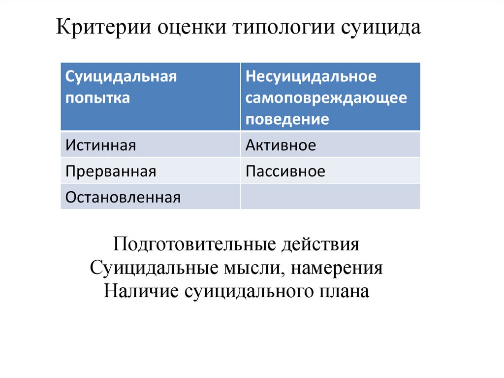 Критерии оценки типологии суицидаСуицидальная