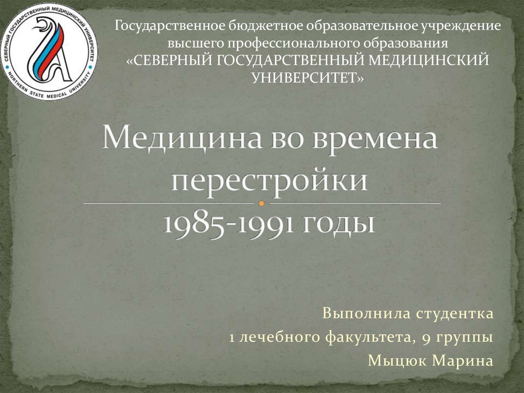 В истории здравоохранения СССР годыперестройки являются одним из самых сложных и