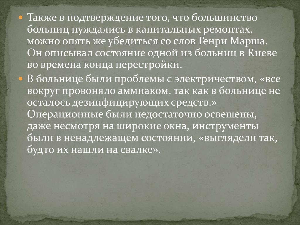 Также в подтверждение того, что большинствобольниц нуждались в капитальных ремонтах,