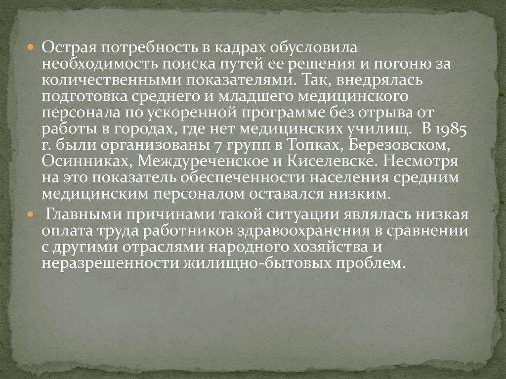 Кузбасса в области здравоохранения на 1985-1991 гг.