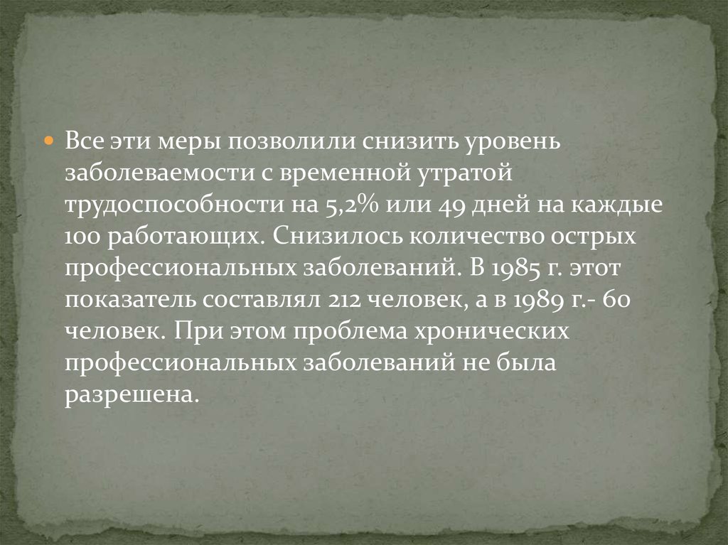 Все эти меры позволили снизить уровеньзаболеваемости с временной утратой