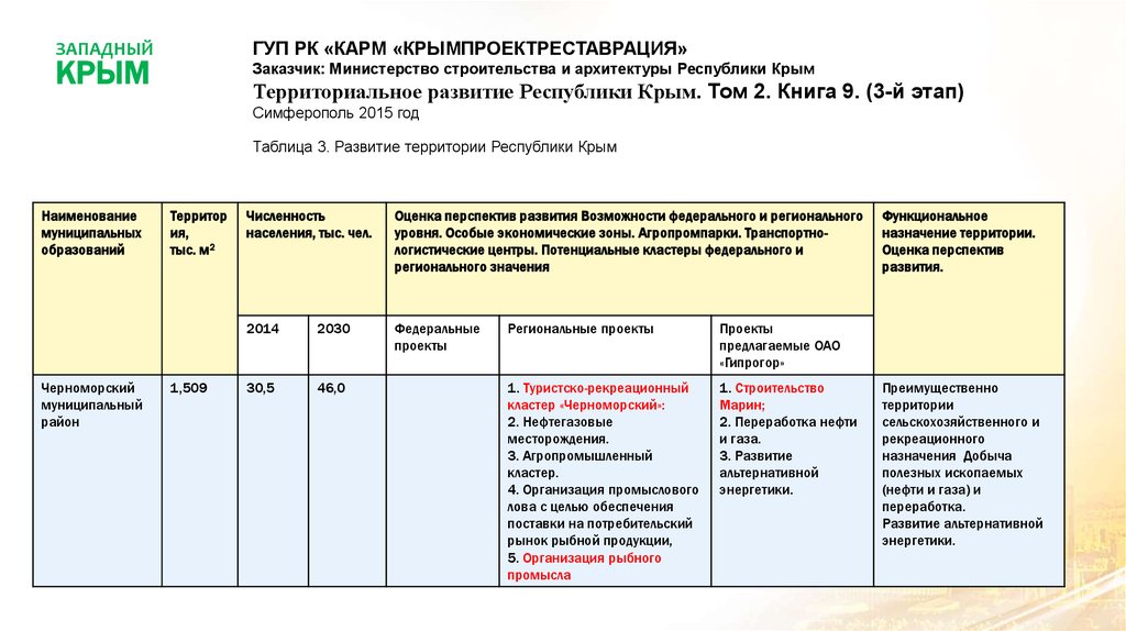 Западный Крым. Развитие территории Республики Крым