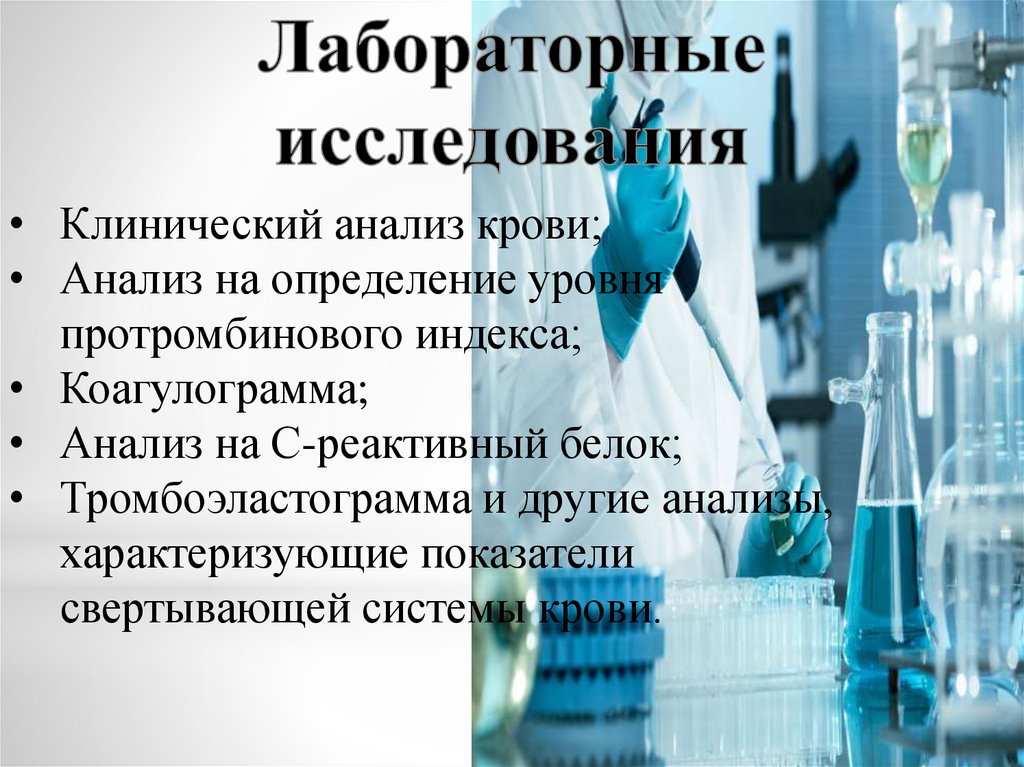 • Тромбоэластограмма и другие анализы,
