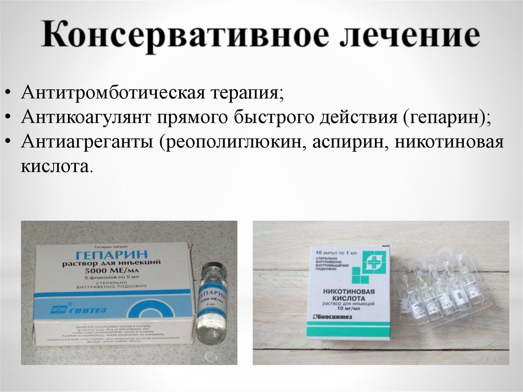 • Антитромботическая терапия;• Антикоагулянт прямого быстрого действия (гепарин);