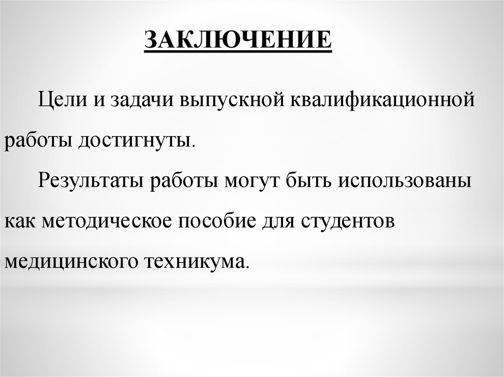 ЗАКЛЮЧЕНИЕЦели и задачи выпускной квалификационной