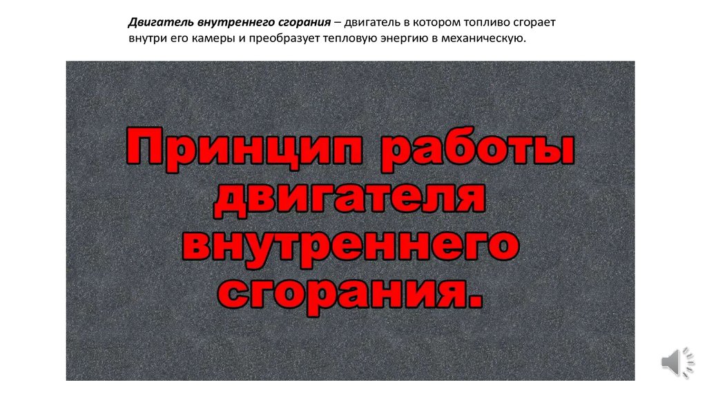 Двигатель внутреннего сгорания – двигатель в котором топливо сгораетвнутри его камеры и преобразует тепловую энергию в механическую.