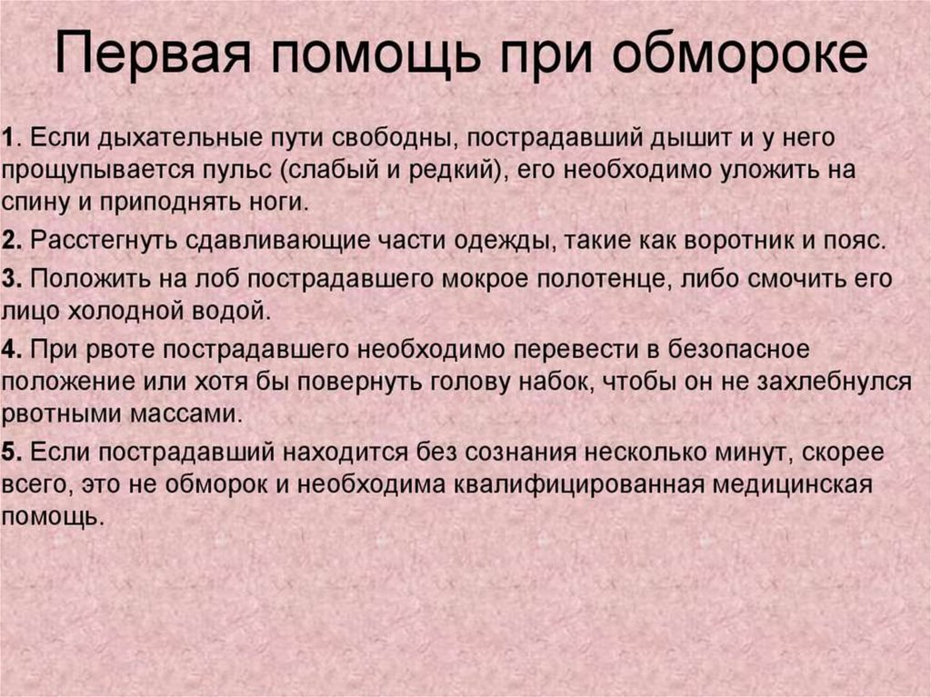 - Первая помощь при потере сознания.