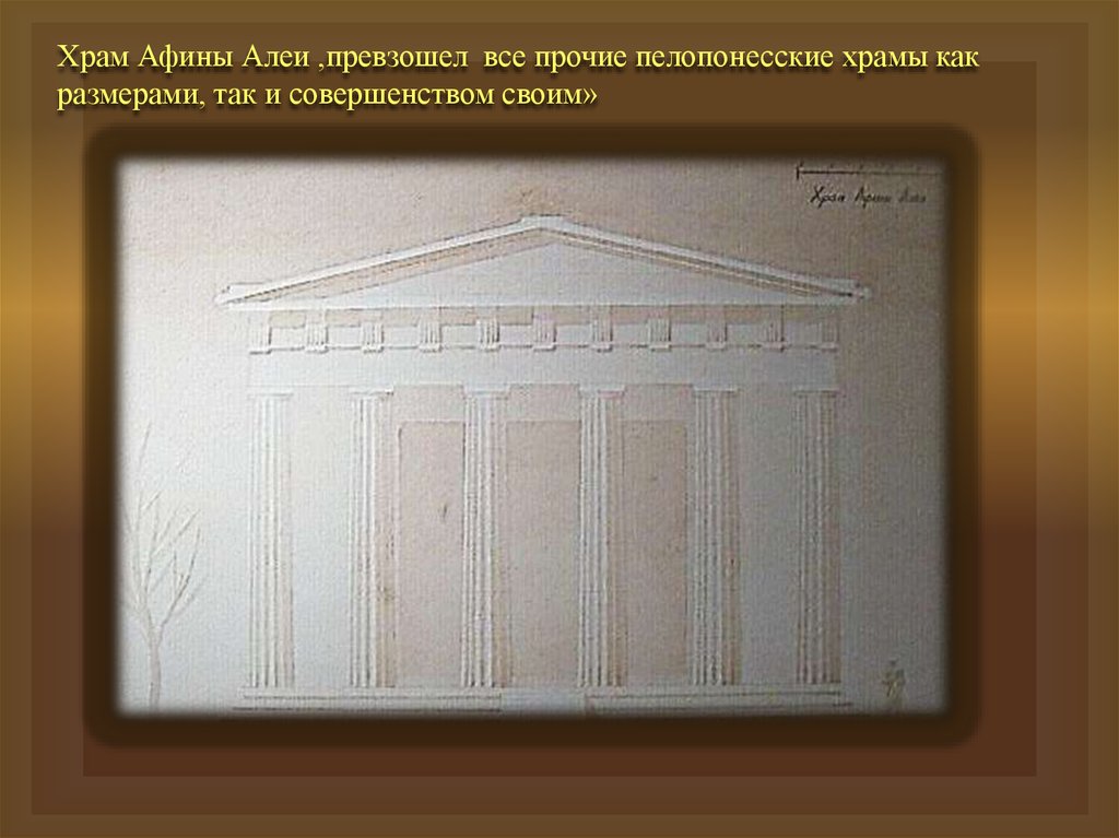 Храм Афины Алеи ,превзошел все прочие пелопонесские храмы какразмерами, так и совершенством своим»