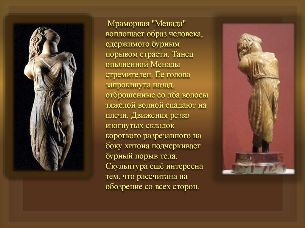 Мраморная "Менада"воплощает образ человека,