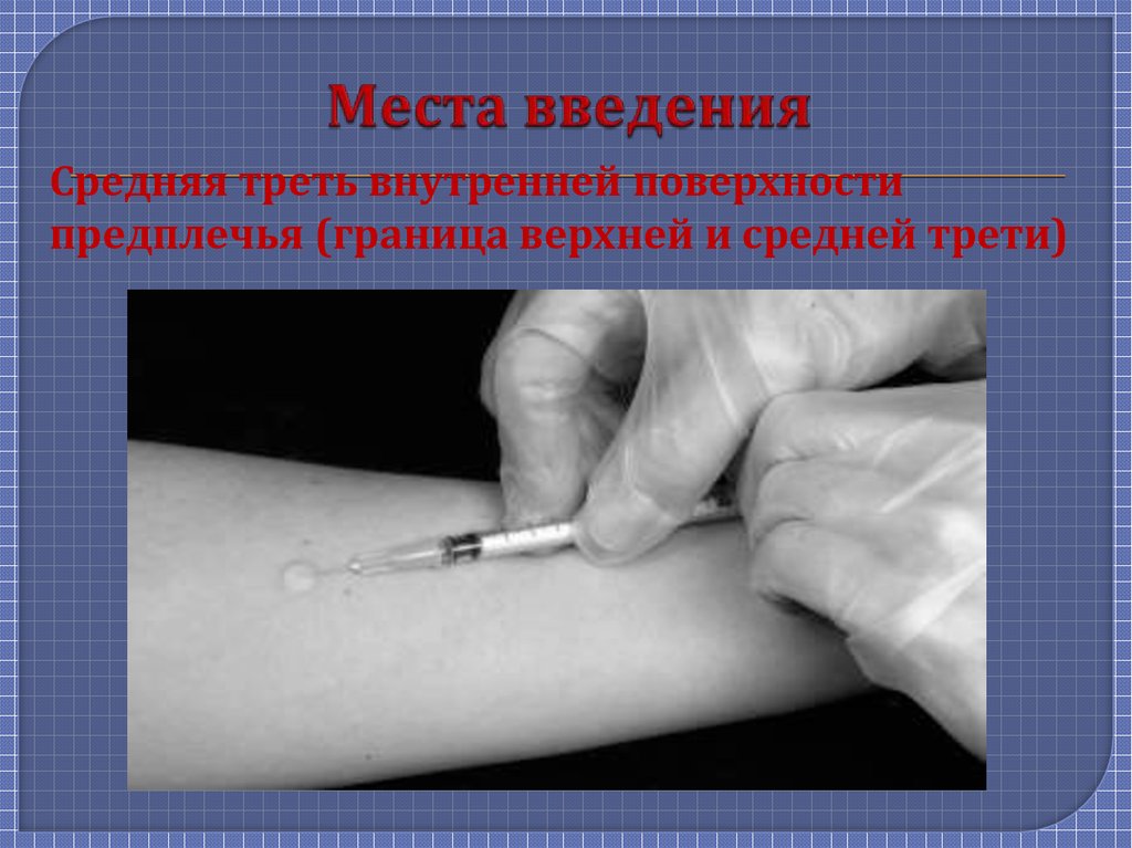 Внутрикожная инъекция – введениелекарственного средства в роговой слой