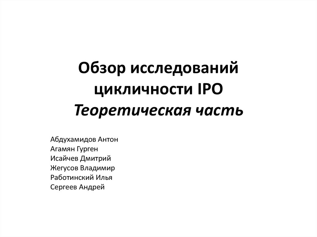 1. Обзор исследований цикличности IPO Теоретическая часть