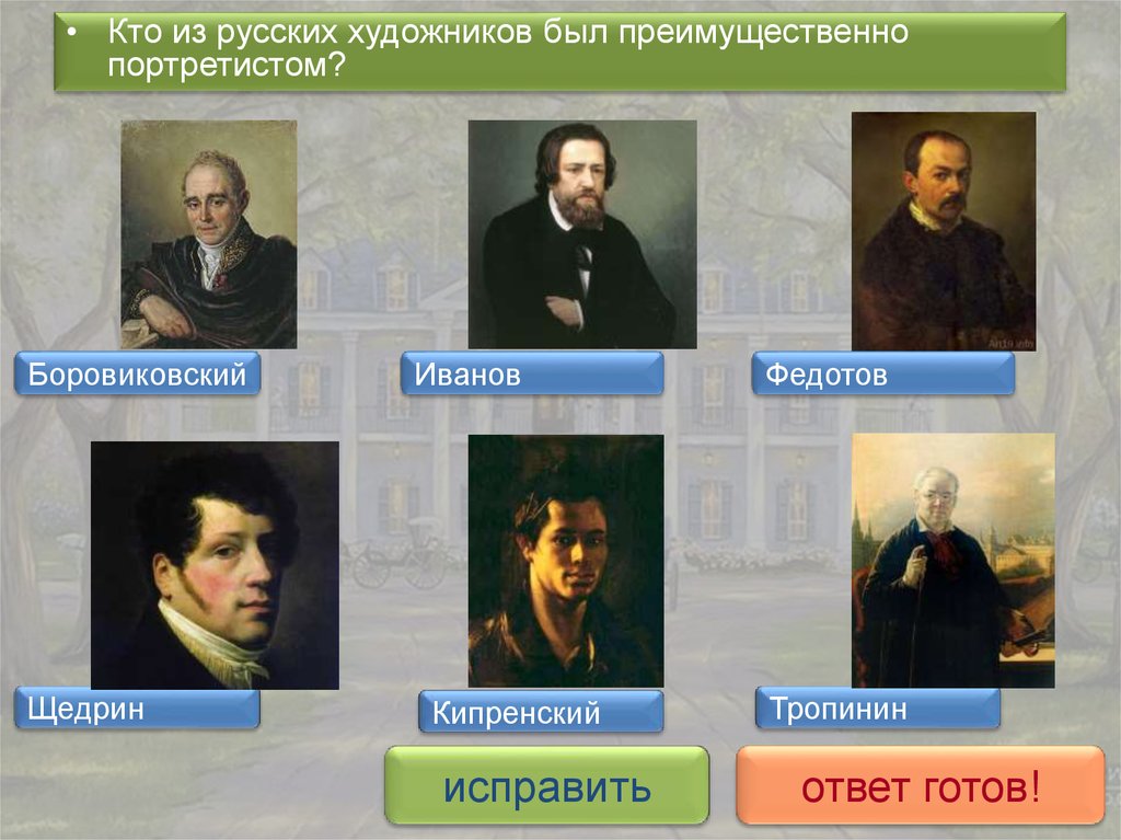 • Кто из русских художников был преимущественнопортретистом?