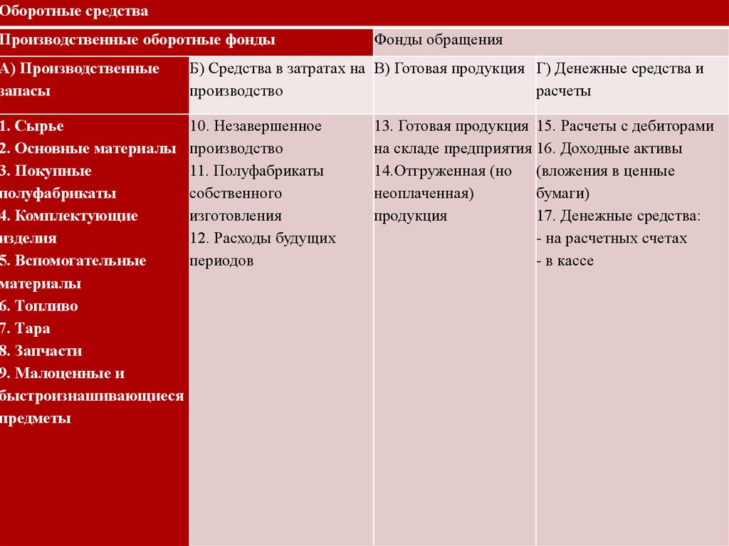 16. Классификация оборотных средств