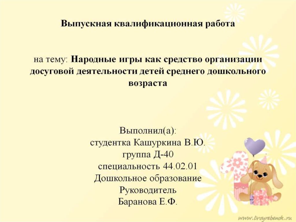 Выпускная квалификационная работа на тему: Народные игры как средство организации досуговой деятельности детей среднего