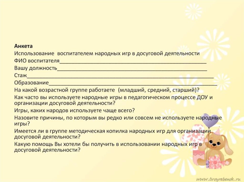 Народные игры как средство организации досуговой деятельности детей среднего дошкольного возраста