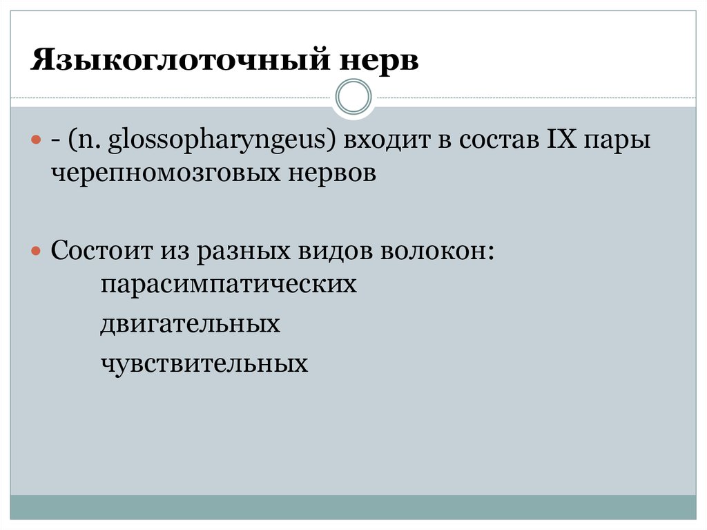 Языкоглоточный нерв- (n. glossopharyngeus) входит в состав IX пары