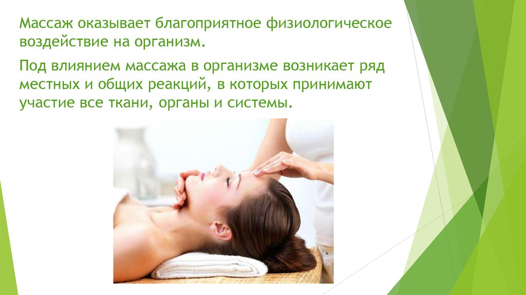 Массаж оказывает благоприятное физиологическоевоздействие на организм.