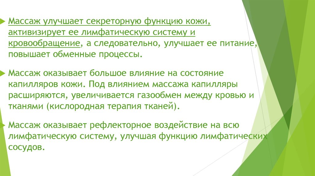 Массаж улучшает секреторную функцию кожи,активизирует ее лимфатическую систему и