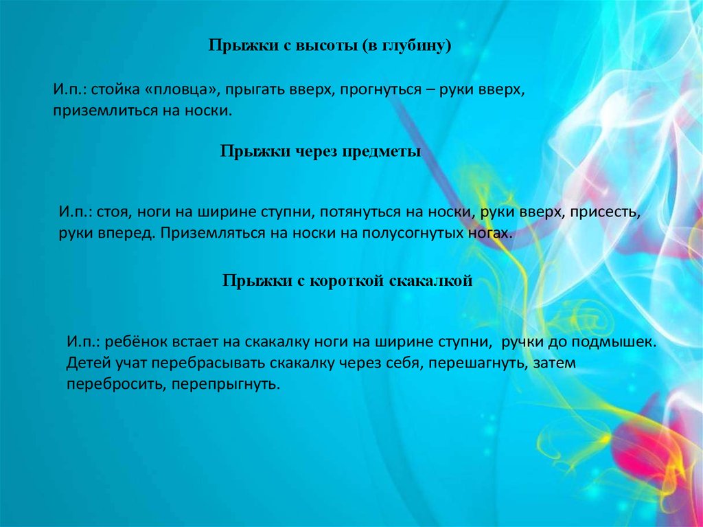 результатов прыжков в повседневных занятиях. В детском саду важно лишь