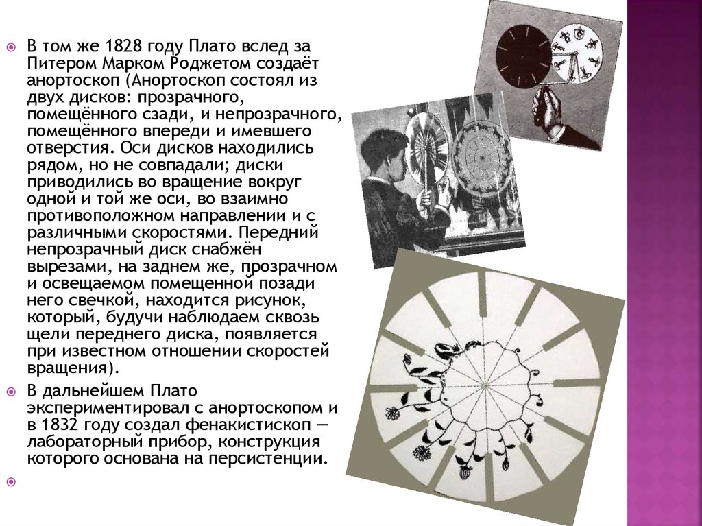 В том же 1828 году Плато вслед заПитером Марком Роджетом создаёт