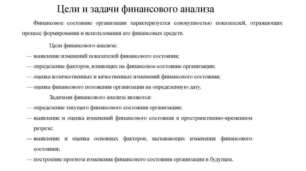 Цели и задачи финансового анализаФинансовое состояние организации характеризуется совокупностью показателей, отражающих