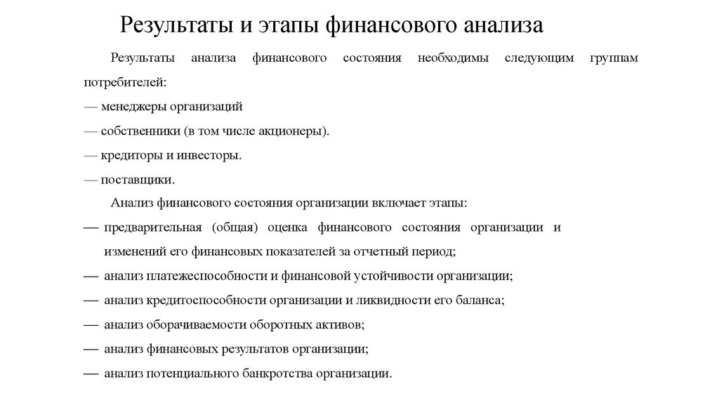 — выявление и оценка основных факторов, вызывающих изменения финансового