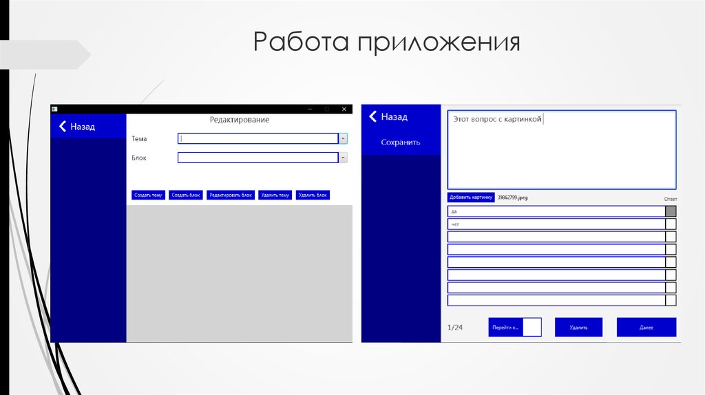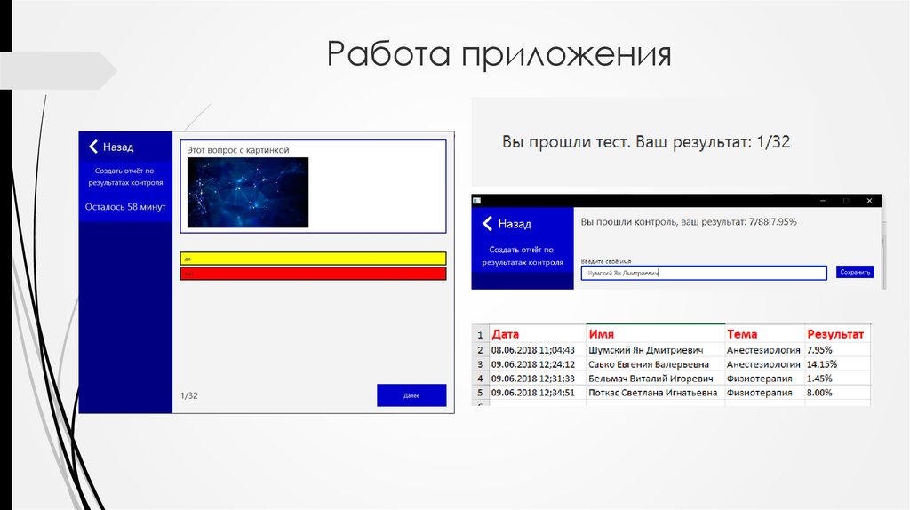 10. Работа приложения
