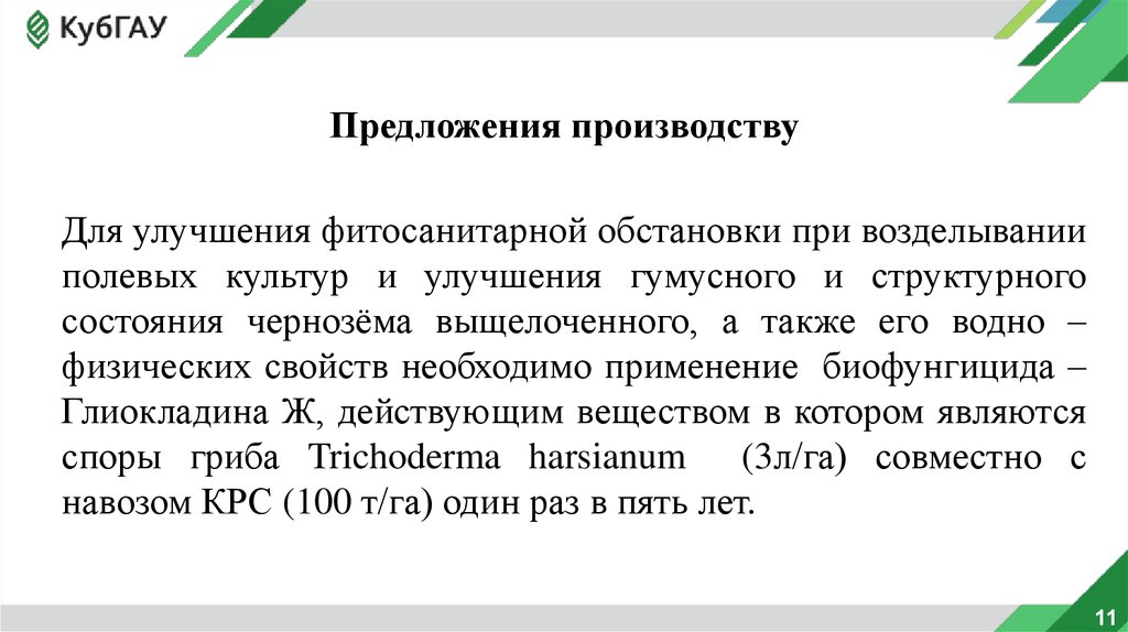 Предложения производствуДля улучшения фитосанитарной обстановки при возделывании