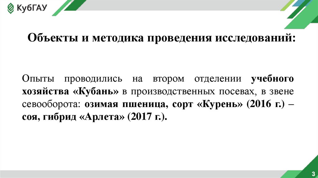 Объекты и методика проведения исследований:Опыты проводились на втором отделении учебного
