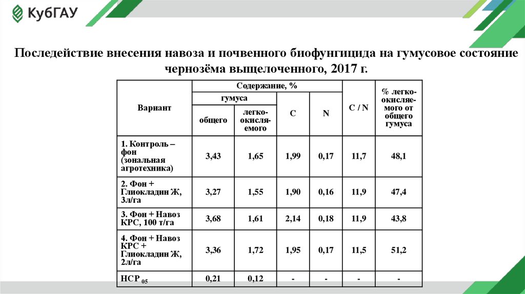 варианте с биофунгицидом сохранилась тенденция к увеличению гумуса.
