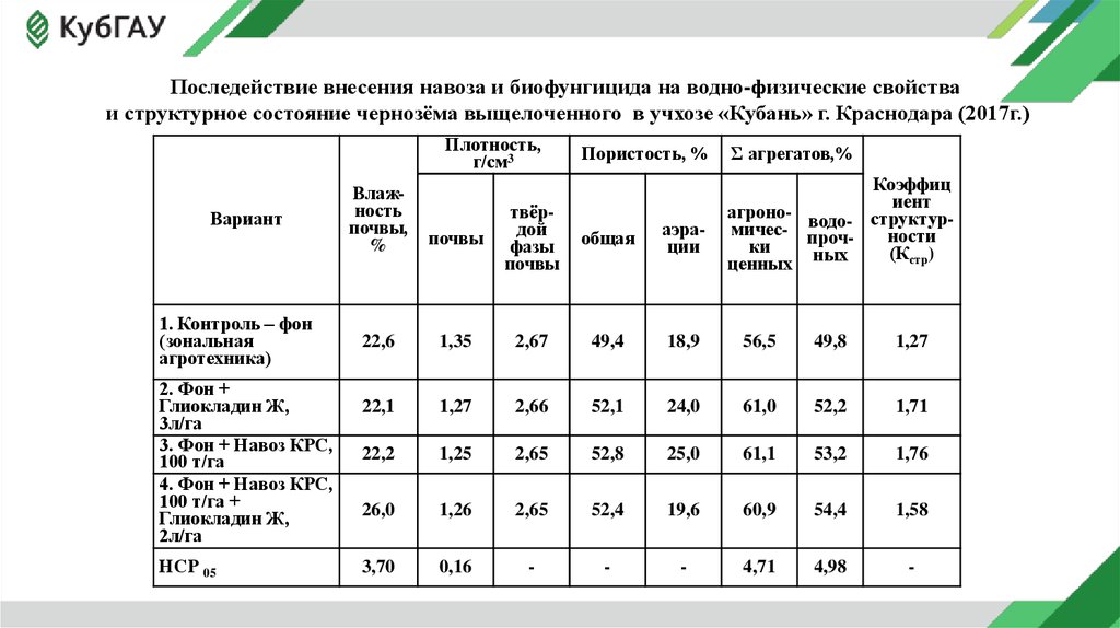 Влияние последействия применения органических удобрений на плодородие чернозёма выщелоченного азово-черноморской равнины