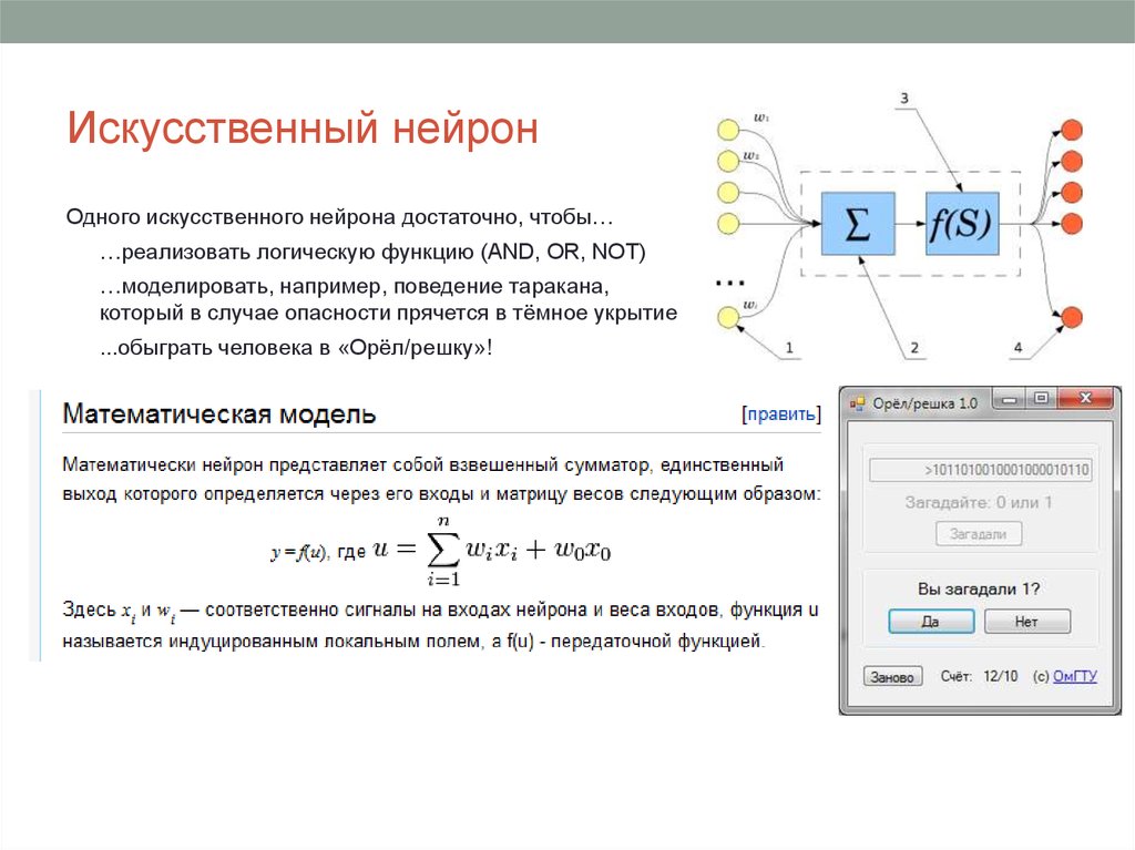 Искусственный нейронОдного искусственного нейрона достаточно, чтобы…