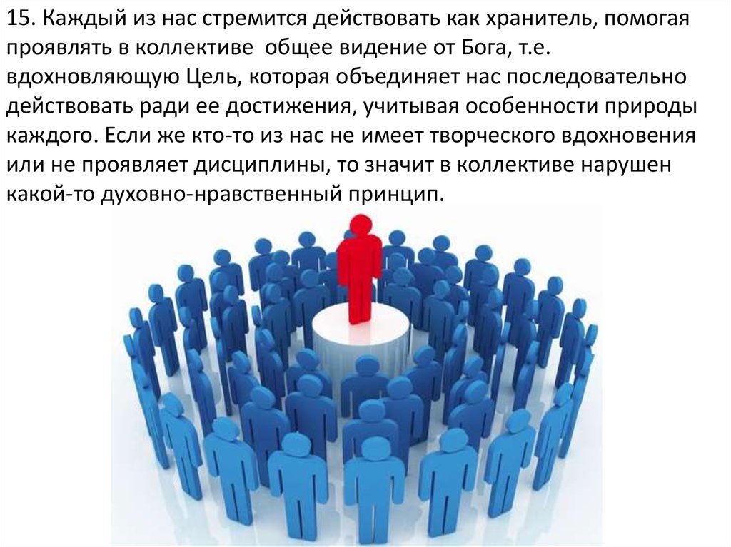 15. Каждый из нас стремится действовать как хранитель, помогаяпроявлять в коллективе общее видение от Бога, т.е.