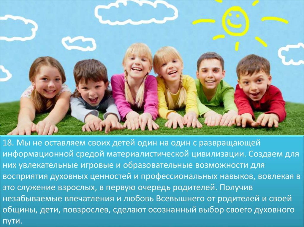 18. Мы не оставляем своих детей один на один с развращающейинформационной средой материалистической цивилизации. Создаем для