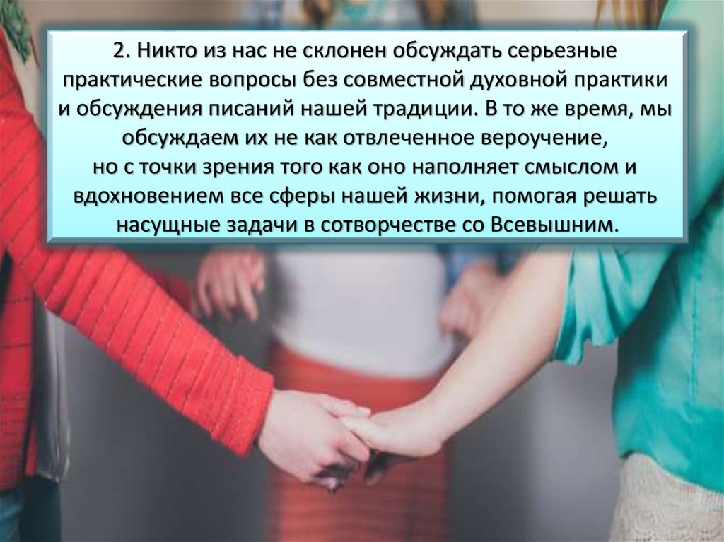 2. Никто из нас не склонен обсуждать серьезныепрактические вопросы без совместной духовной практики