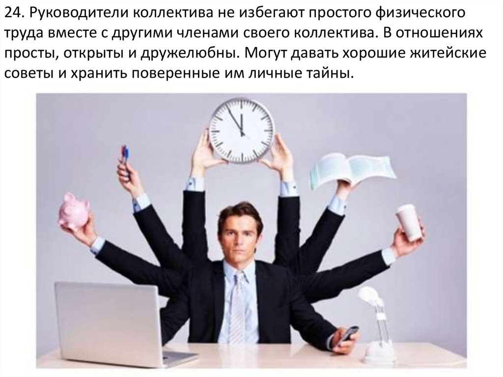 24. Руководители коллектива не избегают простого физическоготруда вместе с другими членами своего коллектива. В отношениях