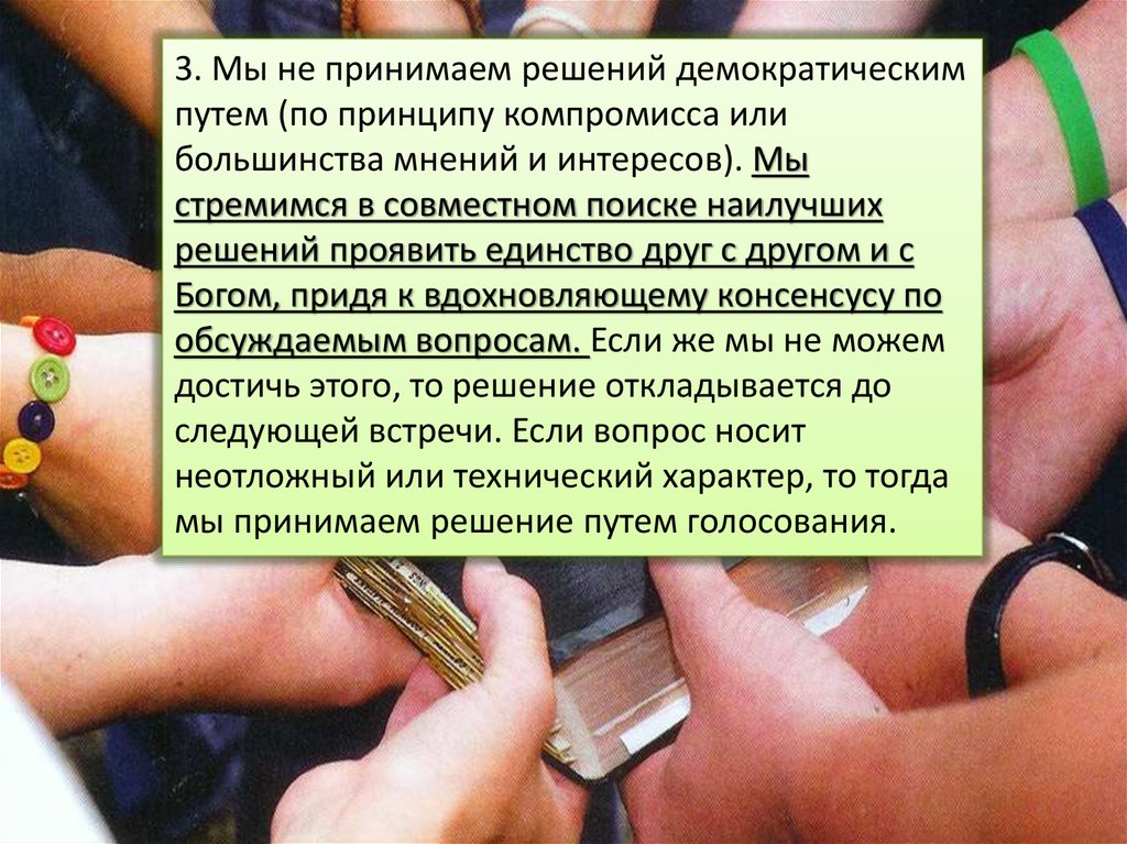 3. Мы не принимаем решений демократическимпутем (по принципу компромисса или