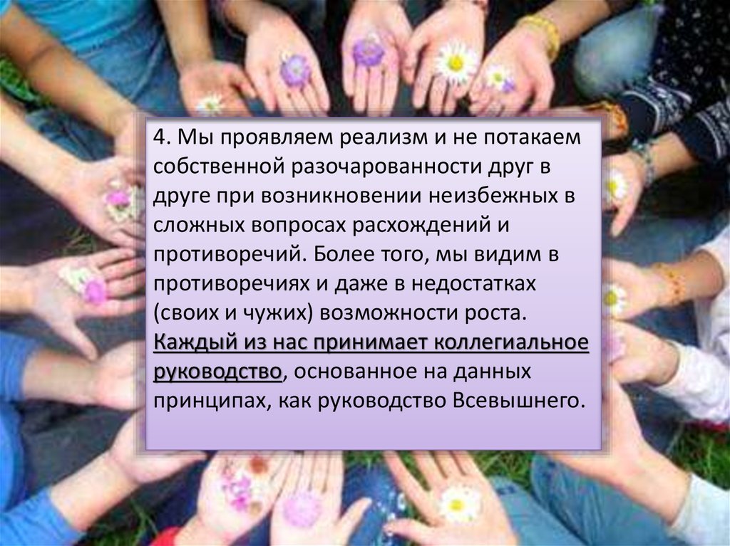 4. Мы проявляем реализм и не потакаемсобственной разочарованности друг в